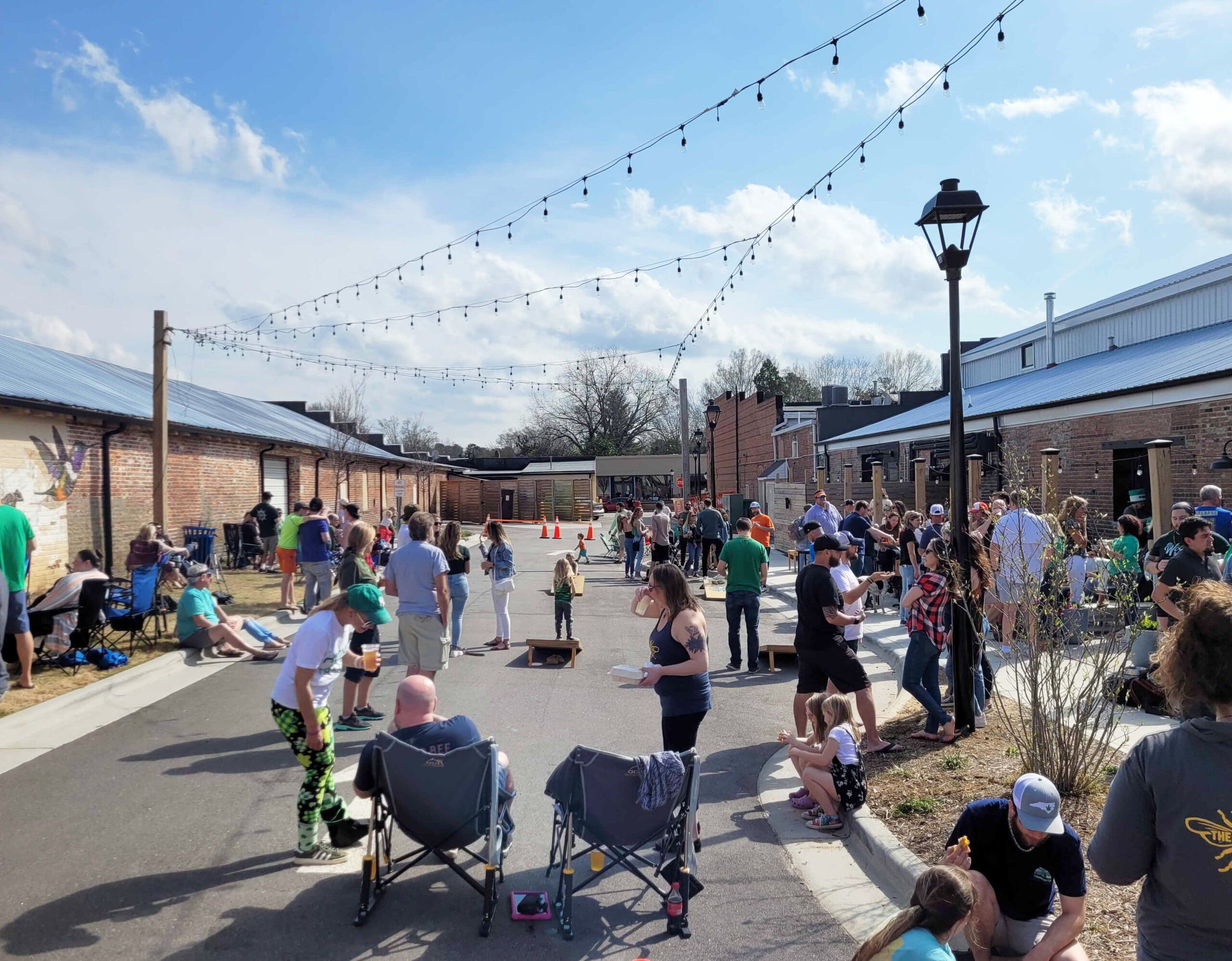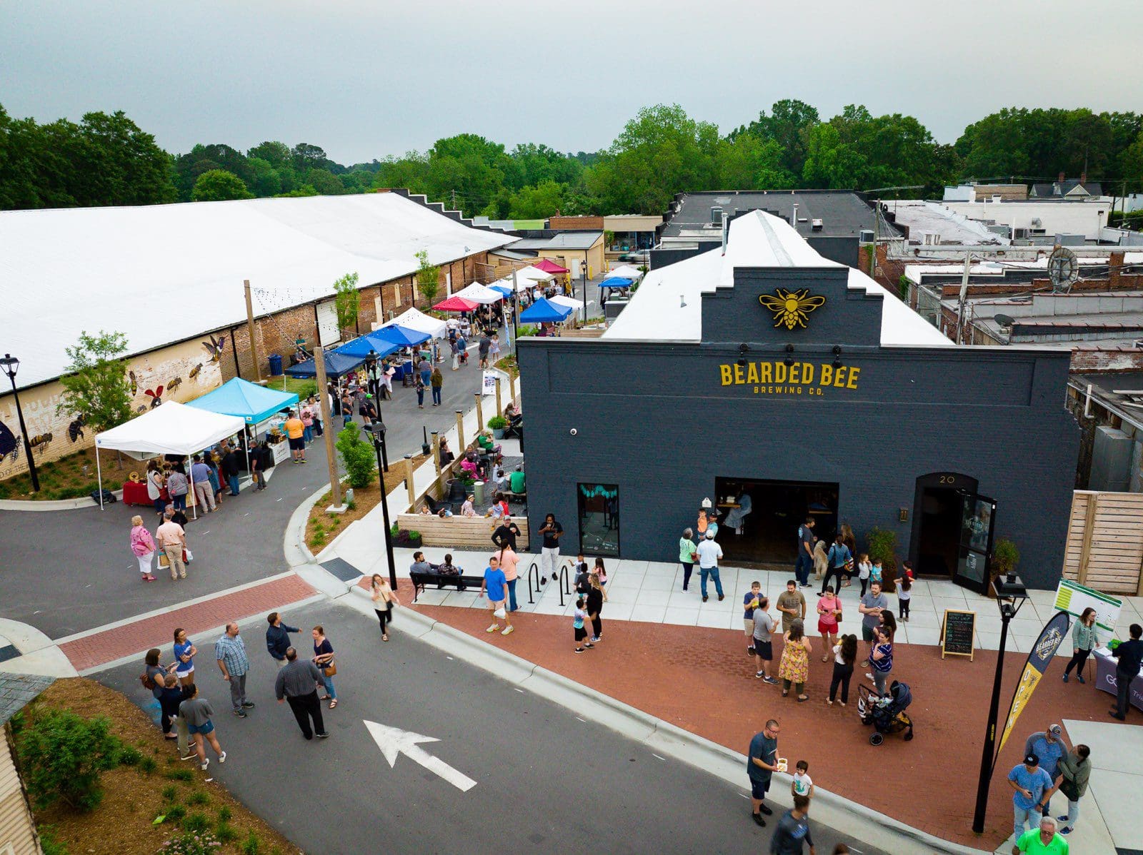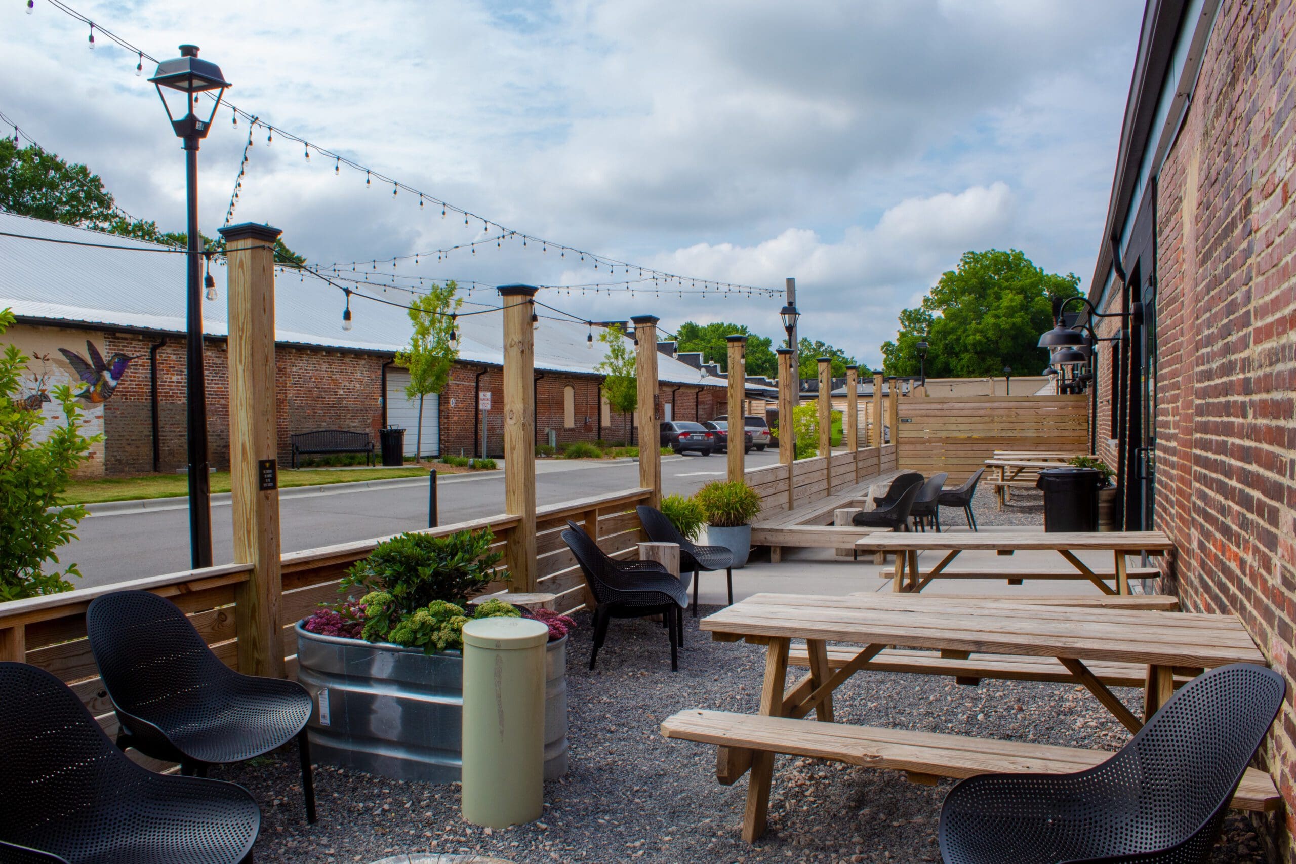 WithersRavenel designed a wide streetscape across the front of the Bearded Bee Brewery where it was previously gravel. A sidewalk to the south meets the plan for pedestrian access. It allows visitors of all abilities to enjoy the area. The entrances to East Campen Row can be closed off easily. This creates a safe space for events. Benches, bike racks, and trash cans help keep the area tidy and comfortable.